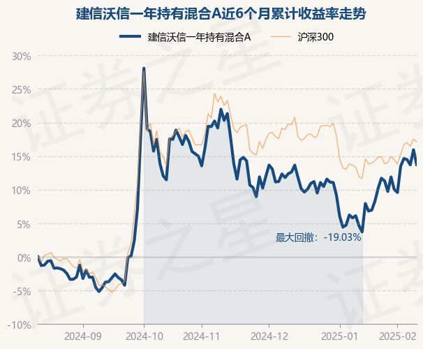 证券之星消息,2月13日,建信沃信一年持有混合A最新单位净值为0.6856元,累计净值为0.6856元,较前一交易日下跌1.9%。历史数据显示该基金近1个月上涨9.66%,近3个月下跌6.26%,近6个月上涨13.74%,近1年上涨14.88%。该基金近6个月的累计收益率走势如下图: