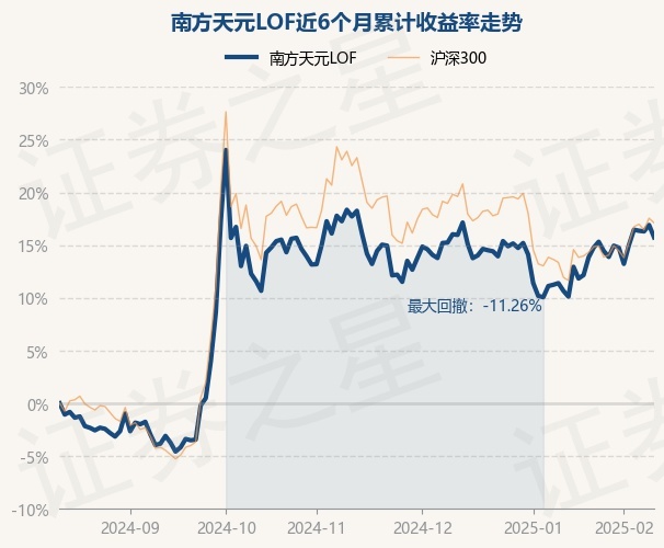 证券之星消息,2月13日,南方天元LOF最新单位净值为3.2648元,累计净值为3.2648元,较前一交易日下跌1.0%。历史数据显示该基金近1个月上涨5.11%,近3个月下跌2.13%,近6个月上涨15.74%,近1年上涨15.2%。该基金近6个月的累计收益率走势如下图: