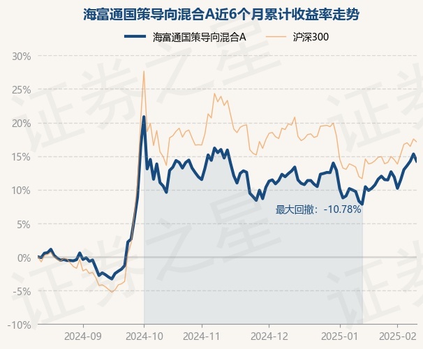 证券之星消息,2月13日,海富通国策导向混合A最新单位净值为1.8774元,累计净值为2.9165元,较前一交易日下跌0.92%。历史数据显示该基金近1个月上涨5.95%,近3个月下跌1.43%,近6个月上涨14.25%,近1年上涨14.79%。该基金近6个月的累计收益率走势如下图: