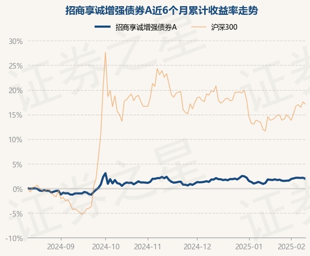 证券之星消息,2月13日,招商享诚增强债券A最新单位净值为1.1128元,累计净值为1.1128元,较前一交易日下跌0.2%。历史数据显示该基金近1个月上涨0.84%,近3个月下跌0.39%,近6个月上涨1.96%,近1年上涨6.8%。该基金近6个月的累计收益率走势如下图: