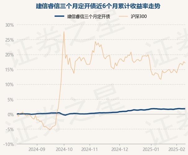 证券之星消息,2月13日,建信睿信三个月定开债最新单位净值为1.0821元,累计净值为1.2051元,较前一交易日上涨0.0%。历史数据显示该基金近1个月上涨0.14%,近3个月上涨1.35%,近6个月上涨1.77%,近1年上涨3.96%。该基金近6个月的累计收益率走势如下图: