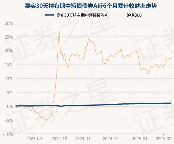 证券之星消息,2月13日,嘉实30天持有期中短债债券A最新单位净值为1.0654元,累计净值为1.0654元,较前一交易日上涨0.0%。历史数据显示该基金近1个月上涨0.09%,近3个月上涨0.68%,近6个月上涨1.01%,近1年上涨2.42%。该基金近6个月的累计收益率走势如下图: