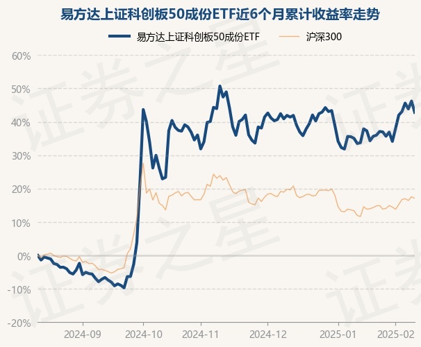 证券之星消息,2月13日,易方达上证科创板50成份ETF最新单位净值为1.0418元,累计净值为0.7299元,较前一交易日下跌2.32%。历史数据显示该基金近1个月上涨6.8%,近3个月下跌4.11%,近6个月上涨42.83%,近1年上涨35.35%。该基金近6个月的累计收益率走势如下图: