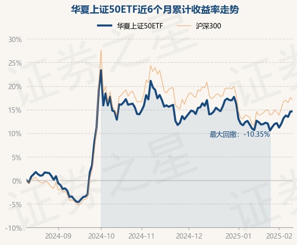 证券之星消息,2月13日,华夏上证50ETF最新单位净值为2.7003元,累计净值为4.0455元,较前一交易日上涨0.04%。历史数据显示该基金近1个月上涨3.57%,近3个月下跌2.95%,近6个月上涨14.61%,近1年上涨15.38%。该基金近6个月的累计收益率走势如下图: