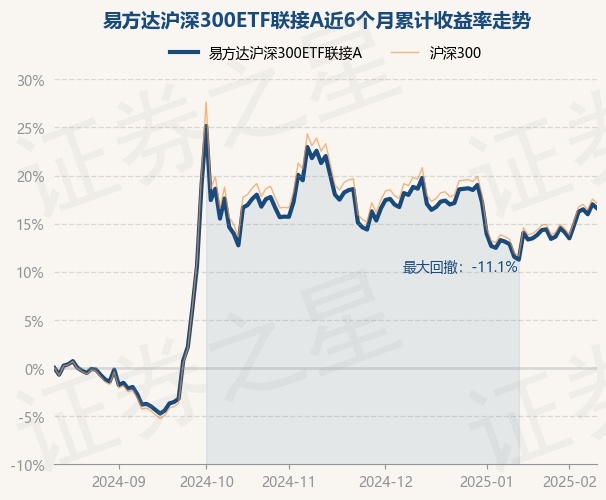 证券之星消息,2月13日,易方达沪深300ETF联接A最新单位净值为1.5446元,累计净值为1.5446元,较前一交易日下跌0.35%。历史数据显示该基金近1个月上涨4.8%,近3个月下跌4.44%,近6个月上涨16.61%,近1年上涨18.08%。该基金近6个月的累计收益率走势如下图: