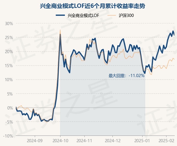证券之星消息,2月13日,兴全商业模式LOF最新单位净值为3.597元,累计净值为4.457元,较前一交易日下跌1.07%。历史数据显示该基金近1个月上涨11.6%,近3个月上涨0.95%,近6个月上涨25.81%,近1年上涨28.24%。该基金近6个月的累计收益率走势如下图: