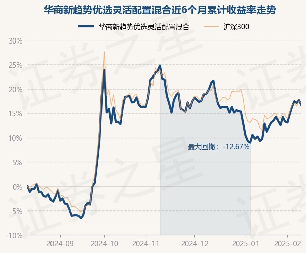 证券之星消息,2月13日,华商新趋势优选灵活配置混合最新单位净值为9.88元,累计净值为9.88元,较前一交易日下跌0.85%。历史数据显示该基金近1个月上涨6.36%,近3个月下跌4.23%,近6个月上涨16.67%,近1年上涨21.0%。该基金近6个月的累计收益率走势如下图: