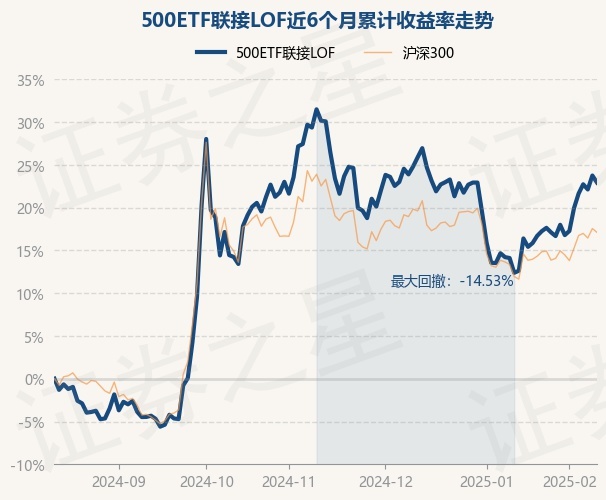 证券之星消息,2月13日,500ETF联接LOF最新单位净值为1.6486元,累计净值为1.7486元,较前一交易日下跌0.66%。历史数据显示该基金近1个月上涨9.16%,近3个月下跌5.5%,近6个月上涨22.93%,近1年上涨15.14%。该基金近6个月的累计收益率走势如下图: