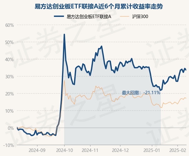 证券之星消息,2月13日,易方达创业板ETF联接A最新单位净值为2.2316元,累计净值为2.2316元,较前一交易日下跌0.68%。历史数据显示该基金近1个月上涨9.32%,近3个月下跌9.42%,近6个月上涨33.61%,近1年上涨25.84%。该基金近6个月的累计收益率走势如下图: