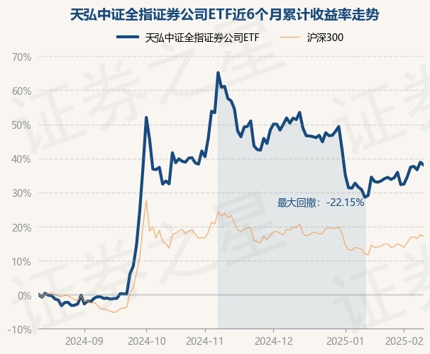 证券之星消息,2月13日,天弘中证全指证券公司ETF最新单位净值为1.0254元,累计净值为1.0254元,较前一交易日下跌0.58%。历史数据显示该基金近1个月上涨6.94%,近3个月下跌12.0%,近6个月上涨38.05%,近1年上涨27.39%。该基金近6个月的累计收益率走势如下图: