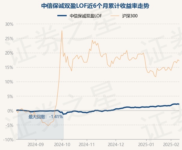 证券之星消息,2月13日,中信保诚双盈LOF最新单位净值为0.9848元,累计净值为1.3848元,较前一交易日下跌0.12%。历史数据显示该基金近1个月上涨0.87%,近3个月上涨2.15%,近6个月上涨2.14%,近1年上涨4.32%。该基金近6个月的累计收益率走势如下图: