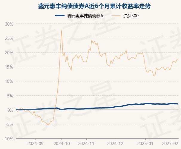 证券之星消息,2月13日,鑫元惠丰纯债债券A最新单位净值为1.0322元,累计净值为1.0872元,较前一交易日下跌0.03%。历史数据显示该基金近1个月上涨0.11%,近3个月上涨1.45%,近6个月上涨2.03%,近1年上涨4.55%。该基金近6个月的累计收益率走势如下图: