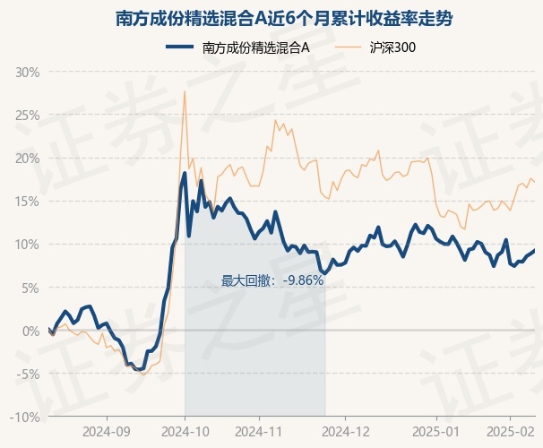 证券之星消息,2月13日,南方成份精选混合A最新单位净值为0.5883元,累计净值为1.9809元,较前一交易日上涨0.32%。历史数据显示该基金近1个月上涨1.01%,近3个月下跌0.49%,近6个月上涨9.19%,近1年上涨10.0%。该基金近6个月的累计收益率走势如下图: