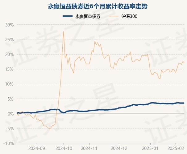 证券之星消息,2月13日,永赢恒益债券最新单位净值为1.1811元,累计净值为1.3104元,较前一交易日上涨0.01%。历史数据显示该基金近1个月上涨0.2%,近3个月上涨2.25%,近6个月上涨3.48%,近1年上涨6.83%。该基金近6个月的累计收益率走势如下图: