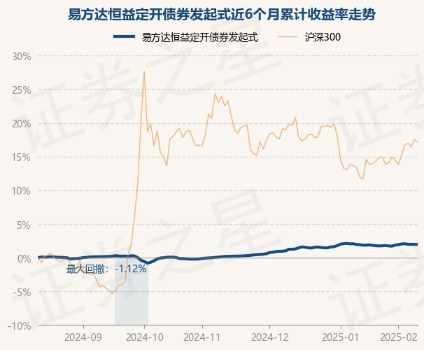 证券之星消息,2月13日,易方达恒益定开债券发起式最新单位净值为1.029元,累计净值为1.309元,较前一交易日上涨0.0%。历史数据显示该基金近1个月上涨0.13%,近3个月上涨1.78%,近6个月上涨1.97%,近1年上涨4.66%。该基金近6个月的累计收益率走势如下图: