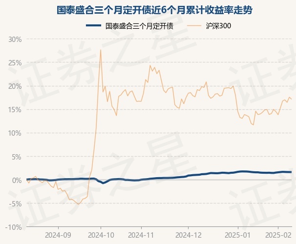 国泰盛合三个月定开债为债券型-长债基金,根据最新一期基金季报显示,该基金资产配置:无股票类资产,债券占净值比125.67%,现金占净值比1.92%。