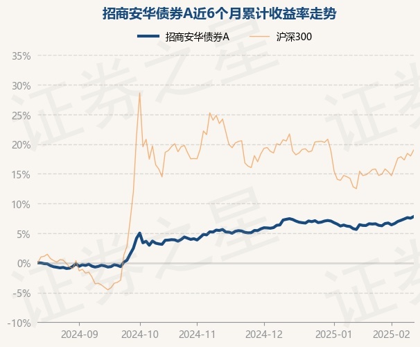 证券之星消息,2月14日,招商安华债券A最新单位净值为1.2262元,累计净值为1.259元,较前一交易日上涨0.26%。历史数据显示该基金近1个月上涨1.29%,近3个月上涨2.47%,近6个月上涨7.8%,近1年上涨8.9%。该基金近6个月的累计收益率走势如下图: