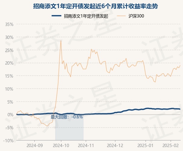 证券之星消息,2月14日,招商添文1年定开债发起最新单位净值为1.0618元,累计净值为1.0618元,较前一交易日下跌0.11%。历史数据显示该基金近1个月下跌0.13%,近3个月上涨1.77%,近6个月上涨2.01%,近1年上涨3.66%。该基金近6个月的累计收益率走势如下图: