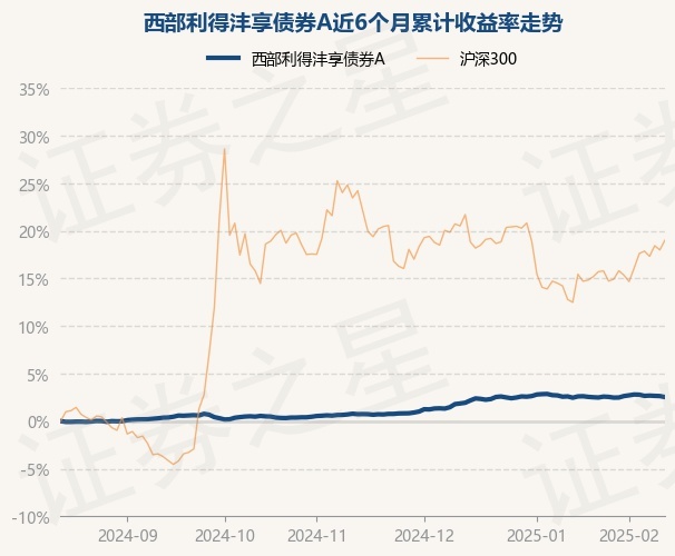 证券之星消息,2月14日,西部利得沣享债券A最新单位净值为1.0655元,累计净值为1.0955元,较前一交易日下跌0.1%。历史数据显示该基金近1个月下跌0.07%,近3个月上涨1.78%,近6个月上涨2.53%,近1年上涨5.14%。该基金近6个月的累计收益率走势如下图: