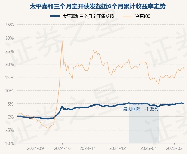 证券之星消息,2月14日,太平嘉和三个月定开债发起最新单位净值为1.0558元,累计净值为1.0558元,较前一交易日上涨0.02%。历史数据显示该基金近1个月上涨0.59%,近3个月上涨0.79%,近6个月上涨5.07%,近1年上涨6.5%。该基金近6个月的累计收益率走势如下图: