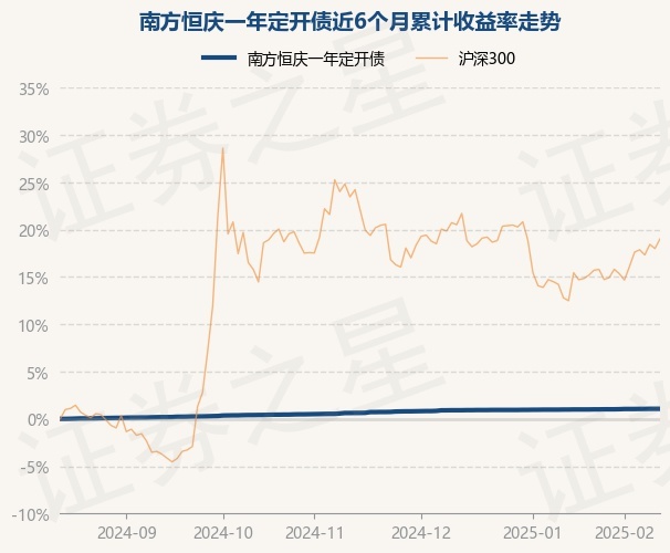 证券之星消息,2月14日,南方恒庆一年定开债最新单位净值为1.0272元,累计净值为1.1099元,较前一交易日上涨0.0%。历史数据显示该基金近1个月上涨0.07%,近3个月上涨0.43%,近6个月上涨1.06%,近1年上涨2.23%。该基金近6个月的累计收益率走势如下图: