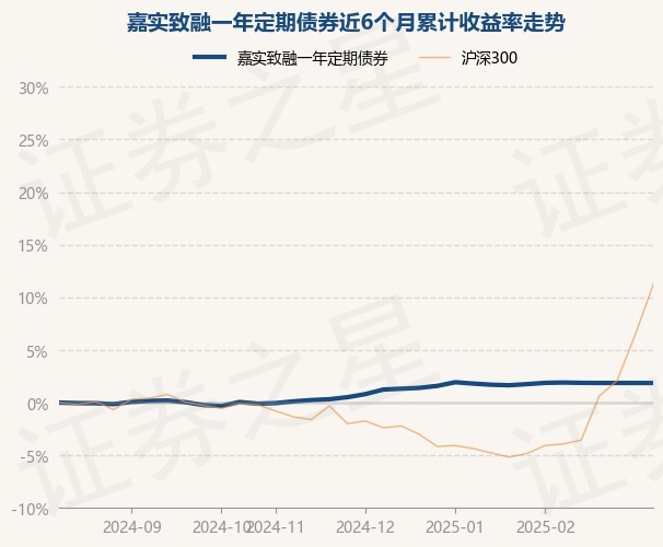 证券之星消息,2月14日,嘉实致融一年定期债券最新单位净值为1.0254元,累计净值为1.2059元,较前一交易日上涨0.0%。历史数据显示该基金近1个月上涨0.01%,近3个月上涨1.69%,近6个月上涨1.81%,近1年上涨4.23%。该基金近6个月的累计收益率走势如下图: