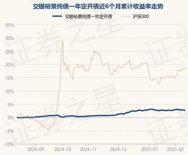 证券之星消息,2月14日,交银裕景纯债一年定开债最新单位净值为1.0492元,累计净值为1.1212元,较前一交易日下跌0.15%。历史数据显示该基金近1个月下跌0.11%,近3个月上涨1.9%,近6个月上涨2.62%,近1年上涨4.89%。该基金近6个月的累计收益率走势如下图: