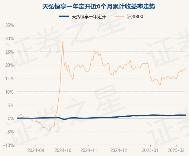 证券之星消息,2月14日,天弘恒享一年定开最新单位净值为1.1426元,累计净值为1.1426元,较前一交易日下跌0.03%。历史数据显示该基金近1个月上涨0.04%,近3个月上涨0.88%,近6个月上涨1.1%,近1年上涨3.25%。该基金近6个月的累计收益率走势如下图: