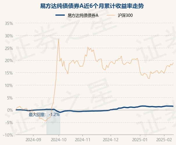 证券之星消息,2月14日,易方达纯债债券A最新单位净值为1.1148元,累计净值为1.6038元,较前一交易日下跌0.06%。历史数据显示该基金近1个月上涨0.13%,近3个月上涨1.9%,近6个月上涨1.42%,近1年上涨4.29%。该基金近6个月的累计收益率走势如下图: