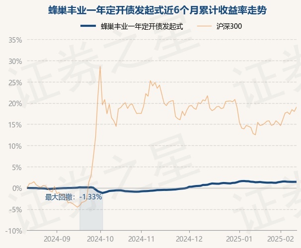 蜂巢丰业一年定开债发起式为债券型-长债基金,根据最新一期基金季报显示,该基金资产配置:无股票类资产,债券占净值比144.89%,现金占净值比0.11%。