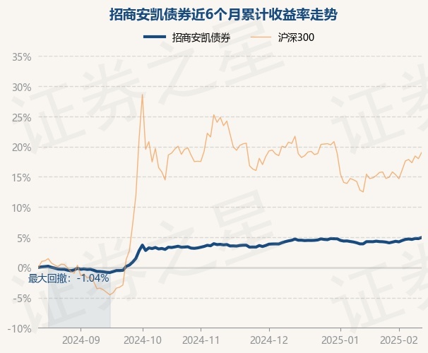 证券之星消息,2月14日,招商安凯债券最新单位净值为1.038元,累计净值为1.1357元,较前一交易日上涨0.17%。历史数据显示该基金近1个月上涨0.66%,近3个月上涨1.34%,近6个月上涨4.94%,近1年上涨9.59%。该基金近6个月的累计收益率走势如下图: