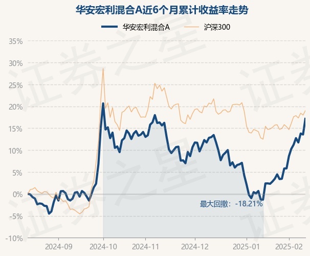 证券之星消息,2月14日,华安宏利混合A最新单位净值为5.4956元,累计净值为6.1156元,较前一交易日上涨3.16%。历史数据显示该基金近1个月上涨14.41%,近3个月上涨3.69%,近6个月上涨17.14%,近1年上涨5.57%。该基金近6个月的累计收益率走势如下图: