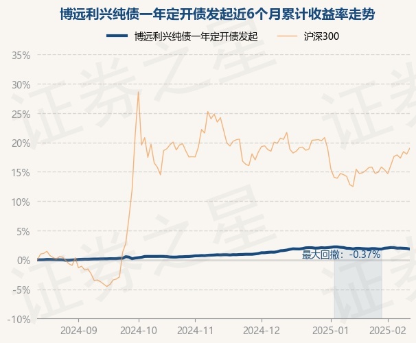 证券之星消息,2月14日,博远利兴纯债一年定开债发起最新单位净值为1.0378元,累计净值为1.0849元,较前一交易日下跌0.1%。历史数据显示该基金近1个月下跌0.12%,近3个月上涨0.96%,近6个月上涨1.83%,近1年上涨4.17%。该基金近6个月的累计收益率走势如下图: