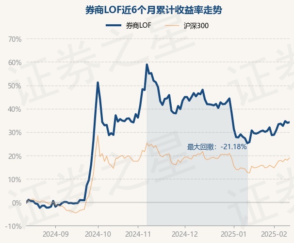 证券之星消息,2月14日,券商LOF最新单位净值为1.1184元,累计净值为0.6496元,较前一交易日上涨0.21%。历史数据显示该基金近1个月上涨2.69%,近3个月下跌10.04%,近6个月上涨34.23%,近1年上涨23.31%。该基金近6个月的累计收益率走势如下图: