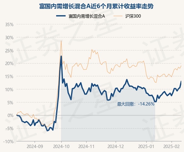 证券之星消息,2月14日,富国内需增长混合A最新单位净值为1.2857元,累计净值为1.2857元,较前一交易日上涨2.09%。历史数据显示该基金近1个月上涨4.9%,近3个月上涨2.55%,近6个月上涨12.93%,近1年上涨6.24%。该基金近6个月的累计收益率走势如下图: