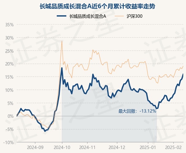 证券之星消息,2月14日,长城品质成长混合A最新单位净值为0.6227元,累计净值为0.6227元,较前一交易日上涨1.58%。历史数据显示该基金近1个月上涨10.02%,近3个月上涨4.1%,近6个月上涨15.89%,近1年上涨16.48%。该基金近6个月的累计收益率走势如下图:
