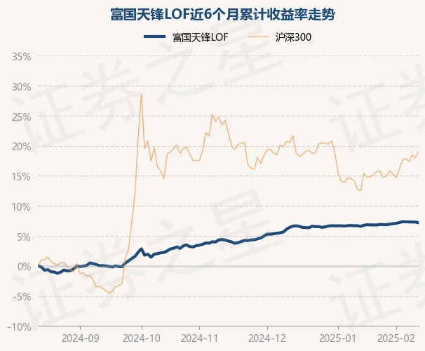证券之星消息,2月14日,富国天锋LOF最新单位净值为1.1609元,累计净值为1.7404元,较前一交易日下跌0.11%。历史数据显示该基金近1个月上涨0.39%,近3个月上涨2.93%,近6个月上涨7.17%,近1年上涨7.13%。该基金近6个月的累计收益率走势如下图: