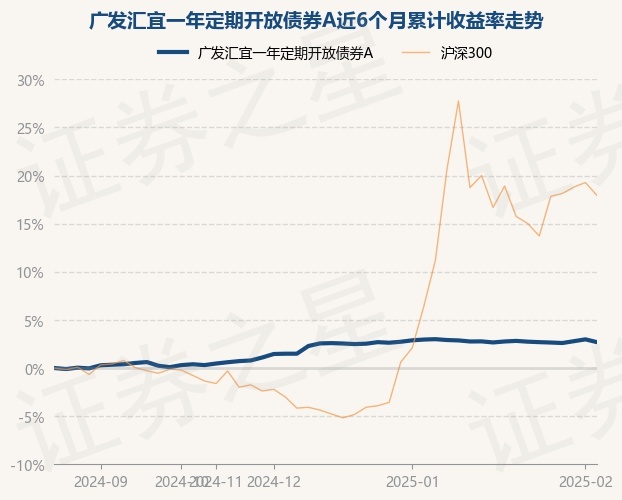 广发汇宜一年定期开放债券A为债券型-长债基金,根据最新一期基金季报显示,该基金资产配置:无股票类资产,债券占净值比99.64%,现金占净值比0.5%。