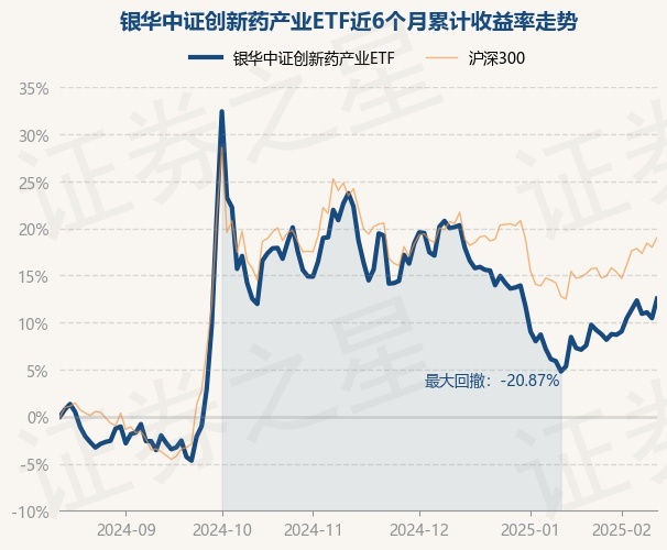 证券之星消息,2月14日,银华中证创新药产业ETF最新单位净值为0.7013元,累计净值为0.7013元,较前一交易日上涨1.87%。历史数据显示该基金近1个月上涨3.76%,近3个月下跌5.19%,近6个月上涨12.53%,近1年上涨0.37%。该基金近6个月的累计收益率走势如下图: