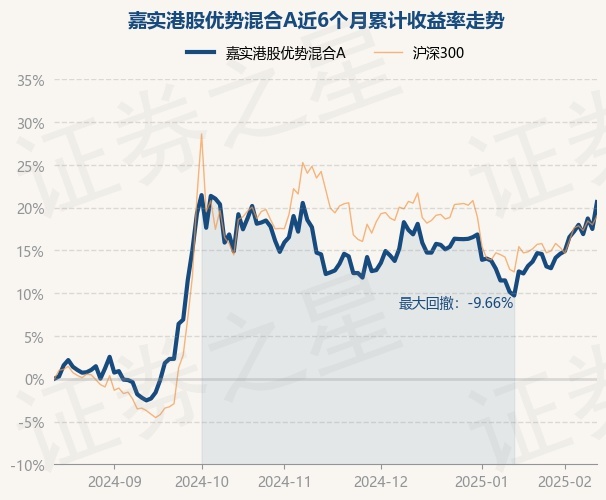 证券之星消息,2月14日,嘉实港股优势混合A最新单位净值为0.9237元,累计净值为0.9237元,较前一交易日上涨2.68%。历史数据显示该基金近1个月上涨7.21%,近3个月上涨7.49%,近6个月上涨20.65%,近1年上涨37.58%。该基金近6个月的累计收益率走势如下图: