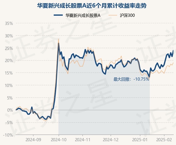 证券之星消息,2月14日,华夏新兴成长股票A最新单位净值为0.7559元,累计净值为0.7559元,较前一交易日上涨1.96%。历史数据显示该基金近1个月上涨5.99%,近3个月上涨2.33%,近6个月上涨23.86%,近1年上涨29.17%。该基金近6个月的累计收益率走势如下图: