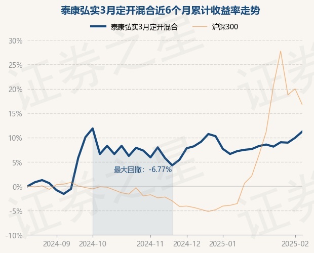 证券之星消息,2月14日,泰康弘实3月定开混合最新单位净值为0.9461元,累计净值为1.5887元,较前一交易日上涨1.18%。历史数据显示该基金近1个月上涨4.33%,近3个月上涨3.02%,近6个月上涨11.24%,近1年上涨12.28%。该基金近6个月的累计收益率走势如下图: