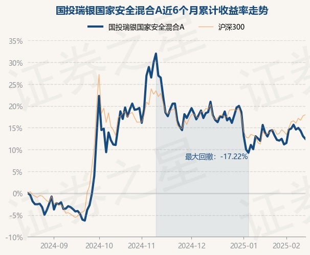 证券之星消息,2月17日,国投瑞银国家安全混合A最新单位净值为1.0187元,累计净值为1.1777元,较前一交易日下跌0.55%。历史数据显示该基金近1个月下跌1.58%,近3个月下跌5.1%,近6个月上涨12.44%,近1年上涨17.91%。该基金近6个月的累计收益率走势如下图: