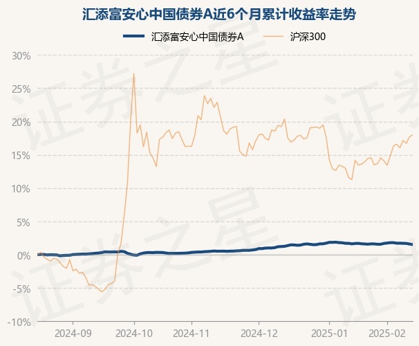 证券之星消息,2月17日,汇添富安心中国债券A最新单位净值为1.249元,累计净值为1.457元,较前一交易日下跌0.08%。历史数据显示该基金近1个月下跌0.09%,近3个月上涨0.97%,近6个月上涨1.51%,近1年上涨4.45%。该基金近6个月的累计收益率走势如下图:
