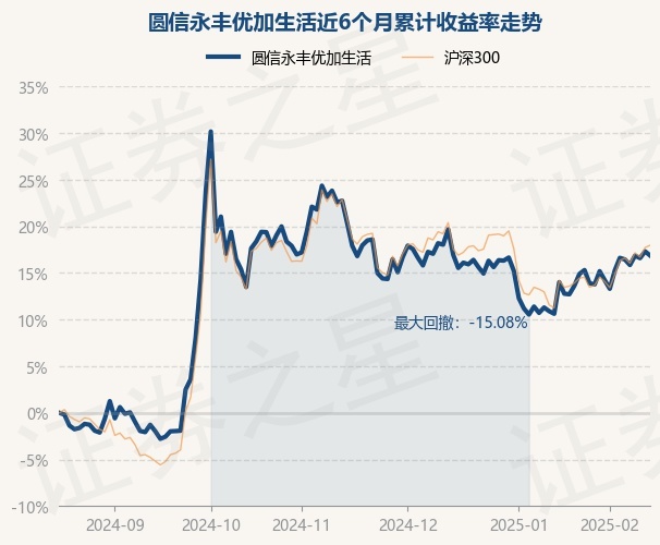 证券之星消息,2月17日,圆信永丰优加生活最新单位净值为2.9738元,累计净值为2.9738元,较前一交易日下跌0.38%。历史数据显示该基金近1个月上涨2.84%,近3个月下跌0.89%,近6个月上涨16.86%,近1年上涨9.54%。该基金近6个月的累计收益率走势如下图: