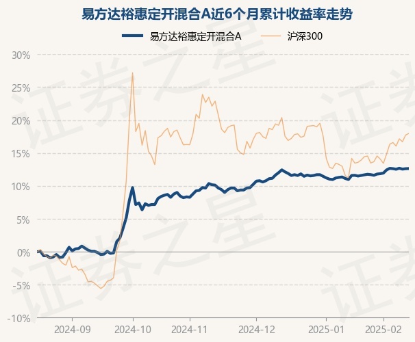 证券之星消息,2月17日,易方达裕惠定开混合A最新单位净值为1.7673元,累计净值为2.5253元,较前一交易日上涨0.02%。历史数据显示该基金近1个月上涨0.94%,近3个月上涨2.93%,近6个月上涨12.64%,近1年上涨12.09%。该基金近6个月的累计收益率走势如下图: