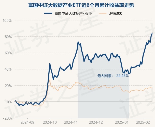 证券之星消息,2月17日,富国中证大数据产业ETF最新单位净值为1.0233元,累计净值为1.0233元,较前一交易日上涨1.26%。历史数据显示该基金近1个月上涨29.3%,近3个月上涨16.76%,近6个月上涨84.01%,近1年上涨64.15%。该基金近6个月的累计收益率走势如下图: