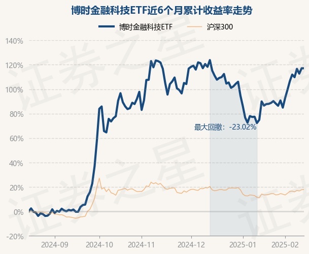 证券之星消息,2月17日,博时金融科技ETF最新单位净值为1.3827元,累计净值为1.3827元,较前一交易日上涨0.0%。历史数据显示该基金近1个月上涨17.09%,近3个月上涨7.27%,近6个月上涨120.11%,近1年上涨89.2%。该基金近6个月的累计收益率走势如下图: