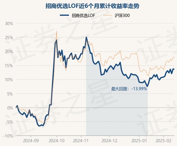 证券之星消息,2月17日,招商优选LOF最新单位净值为0.958元,累计净值为0.958元,较前一交易日上涨0.0%。历史数据显示该基金近1个月上涨1.5%,近3个月下跌1.98%,近6个月上涨13.29%,近1年上涨17.84%。该基金近6个月的累计收益率走势如下图: