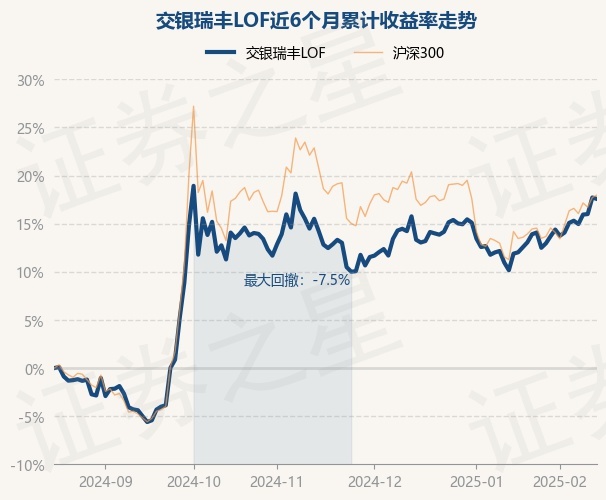 证券之星消息,2月17日,交银瑞丰LOF最新单位净值为1.1547元,累计净值为1.1547元,较前一交易日下跌0.13%。历史数据显示该基金近1个月上涨3.98%,近3个月上涨4.2%,近6个月上涨17.56%,近1年上涨7.72%。该基金近6个月的累计收益率走势如下图: